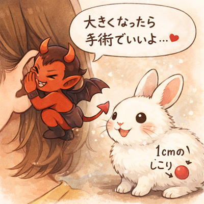 2kgのうさぎさんにとって、1cmといえば僕の体にピンポン玉くらいの腫瘍があるということです。